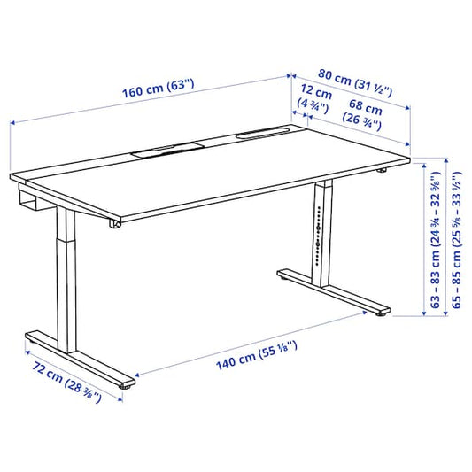 RODULF desk sit/stand, electric/white, 140x80 cm