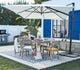 Off-center pole umbrella Aura NATERIAL 281 x 386 cm with white canvasSuitable for shelter from the sun in areas such as gardens, terraces, poolside. The type of opening and its size allow you to shade even small spaces - Ideal for placement in coastal areas due to the saltwater-resistant material.Equipped with a side arm that allows you to tilt the umbrella depending on the position of the sun, providing plenty of shade and fully covering the desired area. At the same time, it does not take up too much space and does not get in the way of outdoor spaces - The cover is moisture-resistant, water-repellent and blocks 100 percent of UV rays - The structure is rust and weather-resistant, and together with the possibility of replacing the cover, guarantees the umbrella a long service life - The practical side handle allows the umbrella to be opened and closed easily and safely.Easy opening thanks to the practical crank handleThe structure is resistant to rust and weather, and together with the possibility of replacing the canvas, it guarantees the umbrella a long service life