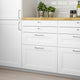 - AXSTAD drawer front has a matt, white surface with soft lines and an inset panel. The design allows you to use it to create both a modern and traditional kitchen.