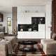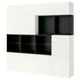 Generous combination in two depths, creating a vibrant visual expression. Hide clutter behind doors, display your favourite items on open shelves– and use the furniture to tell a story about yourself!