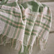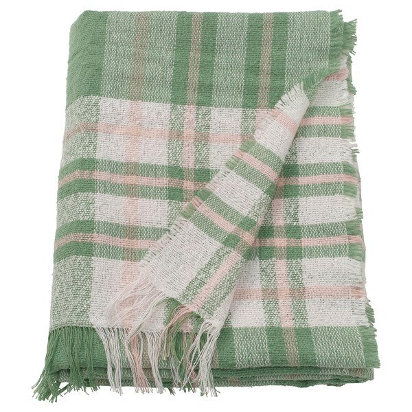 A lightweight, super-soft throw with playful fringes, made for cozying up. The classic block pattern in green and off-white goes with anything, anywhere. Made from 100% recycled polyester.