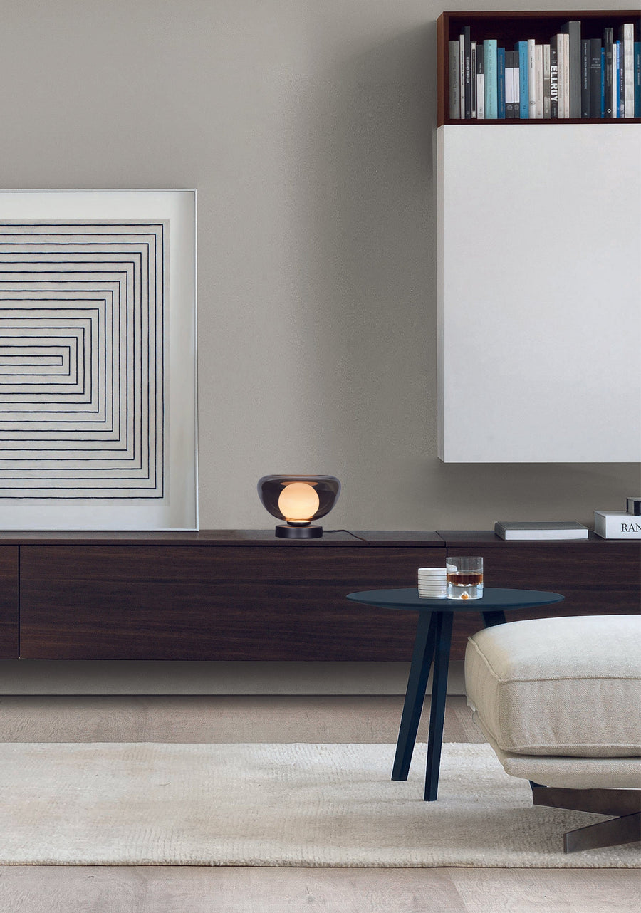 Marina black glass table lamp Ideal for reading or illuminating a part of the room Its black color and smoked glass add a touch of originality to the room