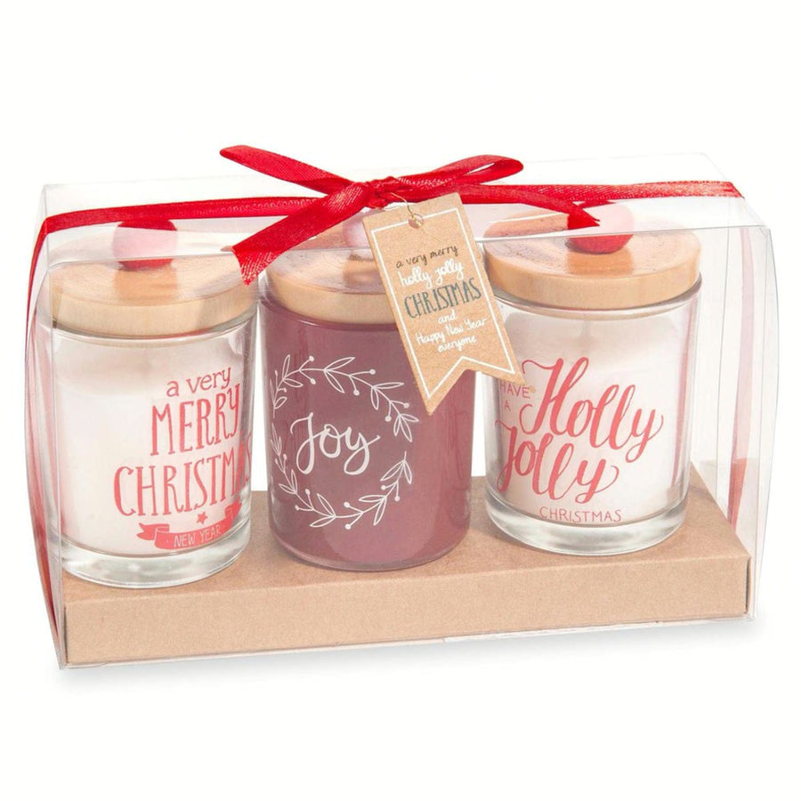 BOX OF 3 GLASS CHRISTMAS CANDLES WITH LID