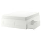 When you live in a small space you need to be clever. That’s probably why you’re looking at this bed frame with 4 spacious drawers. The BRIMNES series has several heroes that help you save space.