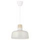 Timeless pendant lamp with a softly shaped white metal shade topped with a decorative detail in solid birch. Blends in and spreads a pleasant directed light over your dining table or kitchen island.