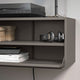 - With cable management on both top and bottom, you can discreetly feed the cords all the way through the media shelf and connect them to the wall socket.