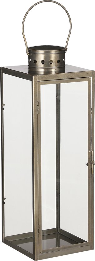 Gold-colored metal lantern w 15 x d 15 x h 45 cm