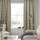 HÄGGVECKMAL room darkening curtains with a classic beige tartan pattern, wool-like expression and matching backing. The fabric gives a good amount of privacy. 300 cm for extra long drop length.