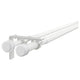 Looking to create a double-layer curtain set-up? This extendable white HUGAD and RÄCKA curtain rod combination includes 2 rods, 4 brackets for wall or ceiling mounting, 4 curtain rod holders and 4 finials.