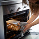 - The food container is made of oven-safe glass and can be used as an oven/serving dish.