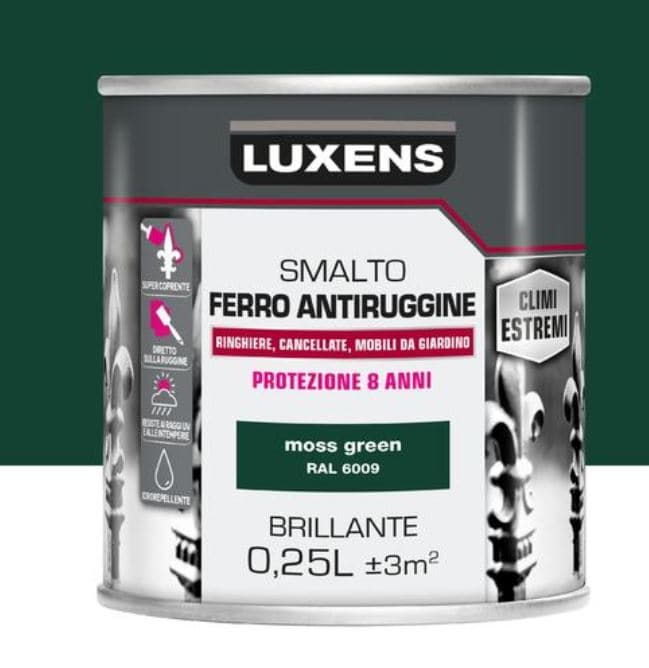 IRON ANTIRUST GREEN BRILLIANT ENAMEL LUXENS 250MLRailings,gates and garden furnitureIt can be applied directly to rust