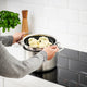 A colander like all the others? Not at all. You can fold this one out and use it directly in the pot – half-way if you need a steaming insert for vegetables and folded fully out when cooking pasta.
