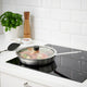- The glass lid allows you to monitor the contents of the pan during the cooking process.