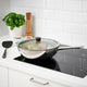 With this glass lid on the frying pan, you can keep an eye on the food while avoiding splatters all over the stove. And since the shape is concave, there is even room for an extra-thick steak.