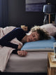 - An ergonomic pillow with two types of comfort; cushioning foam on one side and a cooling fabric on the other.