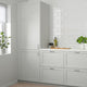 The solid wood frame with bevelled edges and inset veneer panel give LERHYTTAN kitchen fronts a classic, traditional look. The light grey finish creates a cosy kitchen with timeless feel.