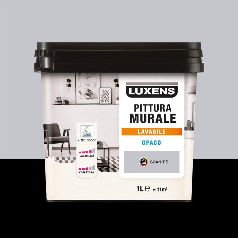 GRANITE GREY PAINT 5 WASHABLE LUXENS 1 LTWashable paint for interior walls and ceilingsGood covering power