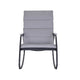 Lyco NATERIAL rocking chair with steel arms with gray/silver textylene seatThis chair is ideal for a relaxing time outdoors.Its high back comfortably supports the back. Comfortable and practical, thanks to the included cushions, which have removable covers to ensure ease of cleaning and maintenanceThe seat is made of textylene, this woven PVC fabric offers elasticity, is weather-resistant and cleans easily.