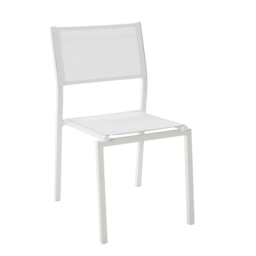 NATERIAL aluminum cushionless garden chair with textilene seatIdeal for everyday use, Lyra Beta chairs are lightweight, stackable and easy to maintainHis aluminum frame resists damage from moisture, cold and rust. Its textilene upholstery is also very durableIts look easily matches the tables in the Lyra and Odyssea series