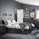A clean design with solid wood veneer. Place the bed freestanding or with the headboard against a wall. You also get spacious storage boxes that roll out smoothly on castors.