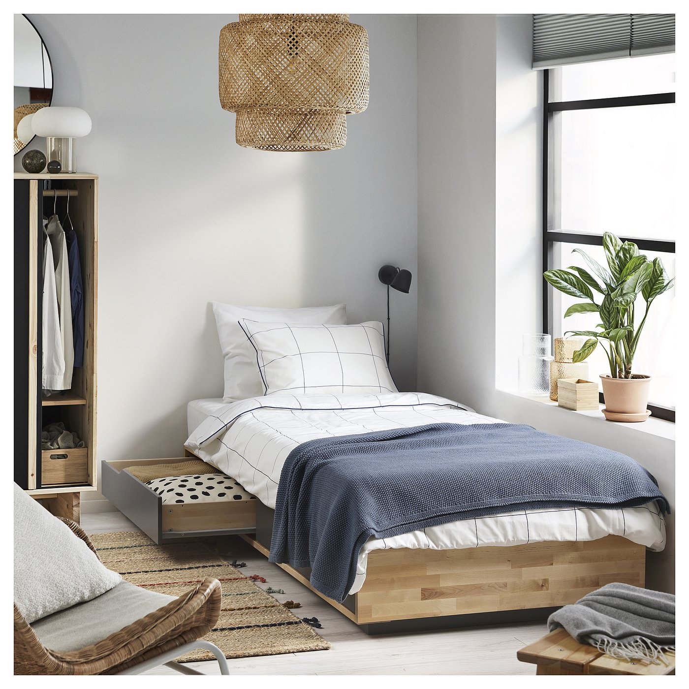 MANDAL bed frame with storage, birch/grey, 90x200 cm