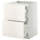 METOD kitchen system gives you endless possibilities to design your dream kitchen. Paired with VEDDINGE fronts in white with smooth clean lines, you get a kitchen with a light and spacious atmosphere.