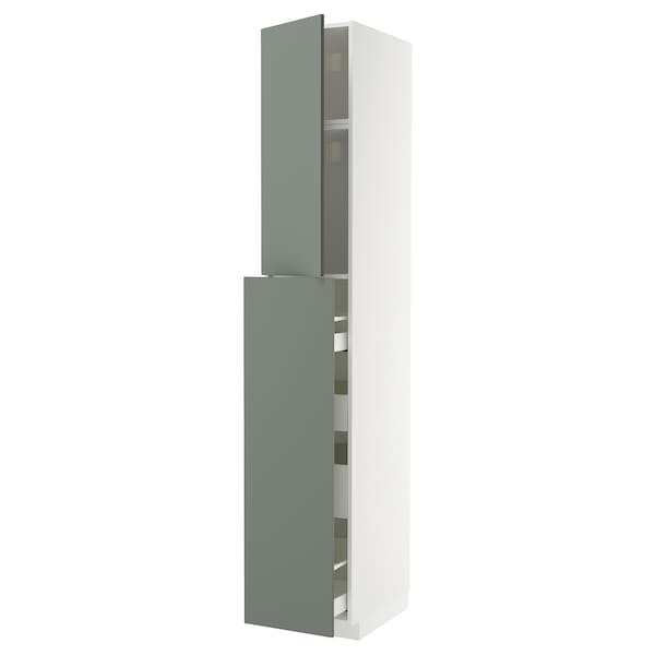 METOD kitchen system gives you endless possibilities to design your dream kitchen. Paired with NICKEBO fronts in matt grey-green you get a harmonious and modern look that is easy to personalise.