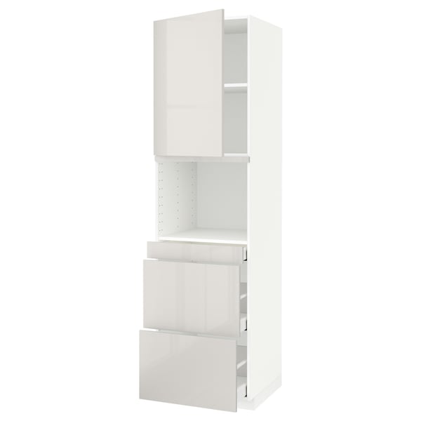 METOD / MAXIMERA hi cab f micro combi w door/3 drwrs, white/Ringhult light grey, 60x60x220 cm