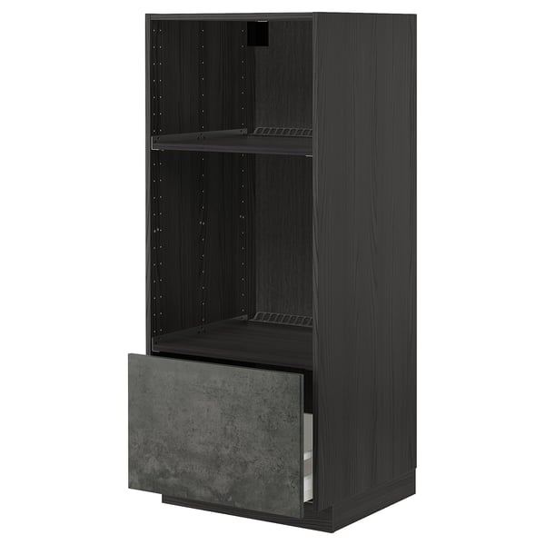 METOD / MAXIMERA high cab for oven/micro w drawer, black/Kalhyttan dark grey concrete effect, 60x60x140 cm