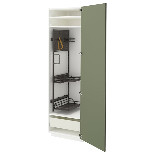 METOD / MAXIMERA high cabinet with cleaning interior, white/Axstad grey-green, 60x60x200 cm