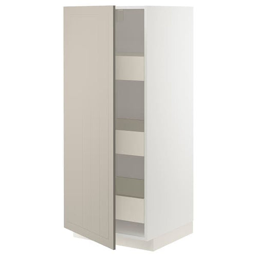 METOD / MAXIMERA high cabinet with drawers, white/Axstad grey-green, 60x60x140 cm