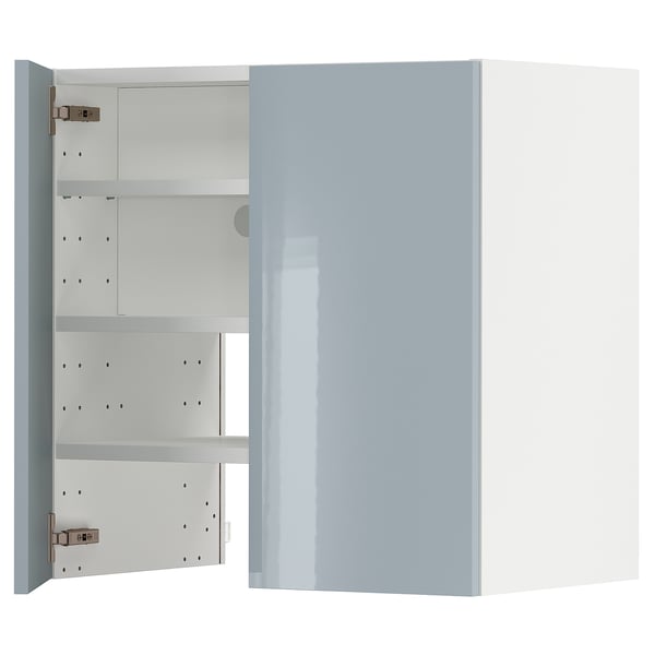 METOD wall cb f extr hood w shlf/door, white/Kallarp light grey-blue, 60x60 cm