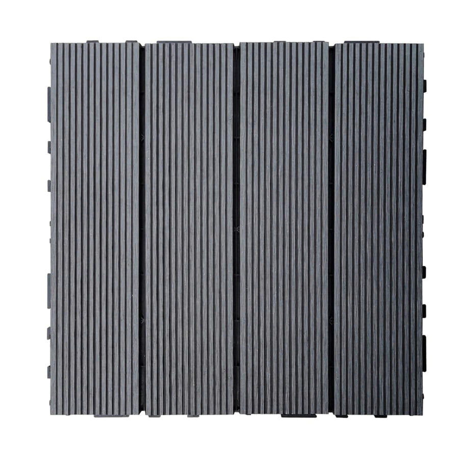 NATERIAL wood-plastic composite (wpc) poplar interlocking tile 30.7 x 30.7 cm Sp 23 mm, grayIdeal for installation on outdoor floors such as gardens and terraces, it is an elegant and durable solution for quickly and easily renewing the floor of balconies, pool areas, spas or outdoor showers.Its non-slip surface offers safety and is easily and quickly installed thanks to the clip system that requires no tools or glue - Maintenance-free, easy to clean, retains its original color, without cracks or splinters, ensuring safety even when barefoot - Non-slip - Resistant to moisture and UV rays, ensures a long life