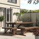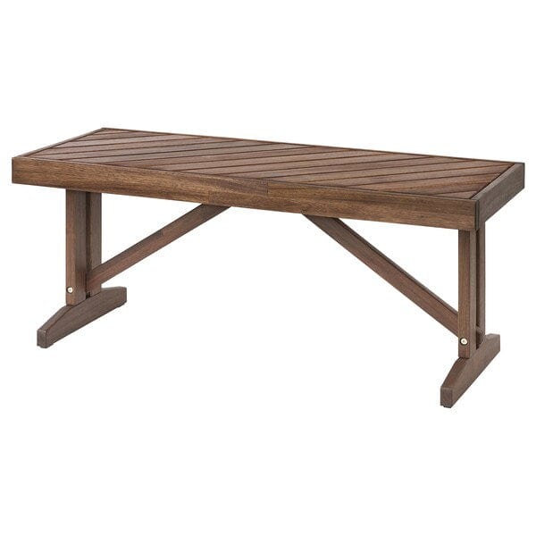 A sturdy outdoor bench with rustic charm and a beautiful herringbone pattern. Made of hard and durable acacia wood that only gets more beautiful with age.