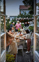 Big and sturdy wooden dining table with matching comfortable chairs. NORRMANSÖ outdoor furniture has a unique farmhouse style and is made for enjoying food and socialising outdoors.