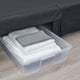 - The space under the sofa is designed to fit storage boxes where you can store e.g. bedlinen.