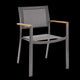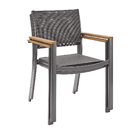 Chair with armrests without cushion made of aluminiolegno Oris NATERIAL colorIdeal for completing the decor of a table outdoors.Stackable, to ensure maximum space savings when not in useResistant to rust and deformation due to weathering, without losing lightness and practicality. Can be combined with tables from the Oris series.