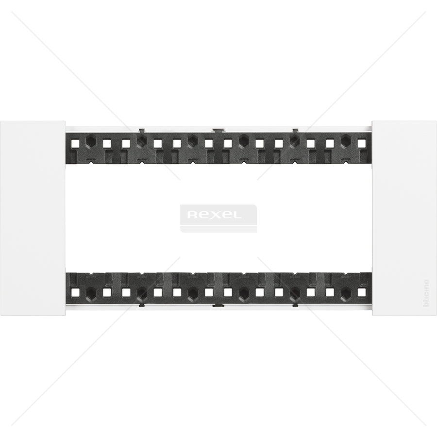 Pokrivna plošča Living Now je dodatek, ki je skupaj s pokrovi nameščen na funkcionalni del za estetsko zaokrožitev stikala. Ta pokrovna plošča za 6 modulov je bele barve na plastični podlagi.