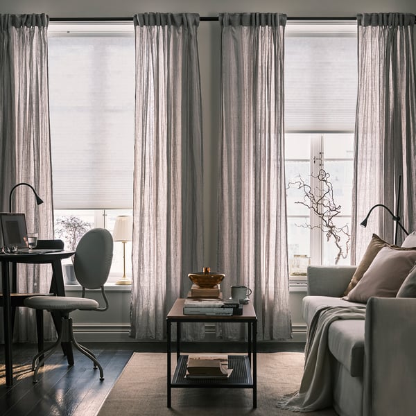 PRAKTLYSING cellular blind filters light and insulates against window drafts and heat from the sun. Use with remote control or with DIRIGERA hub and IKEA Home smart app for more smart control options.