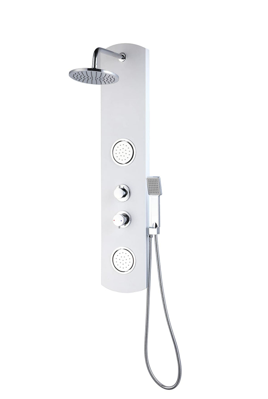 Koloa whirlpool shower column with matte white mechanical mixer 2 jetsFor medium and large shower trays, it is ideal for showering with multiple water jets two whirlpool bodyjets, hand shower and swivel showerhead