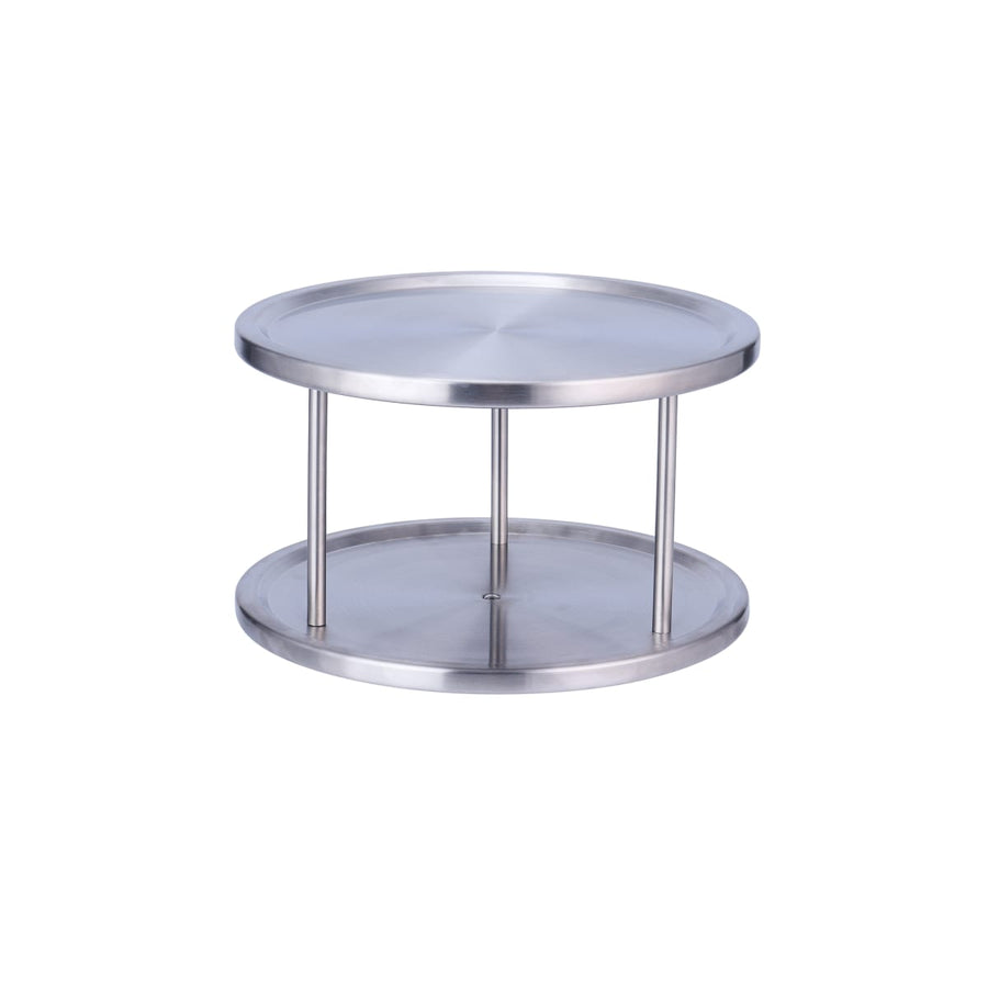 Rotating storage shelf with two shelves, in silver stainless steel, W 26.7 x H 16.3 x D 26.7 cm