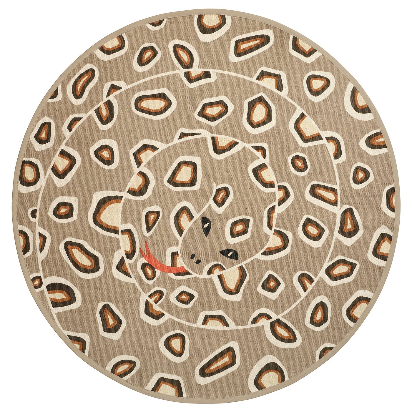 A snake with a beautiful pattern has curled up on this round, flatwoven rug. And keep an eye out for the same snake hiding in the grass on more items in the SANDLÖPARE collection. Slip-reducing coating underneath.