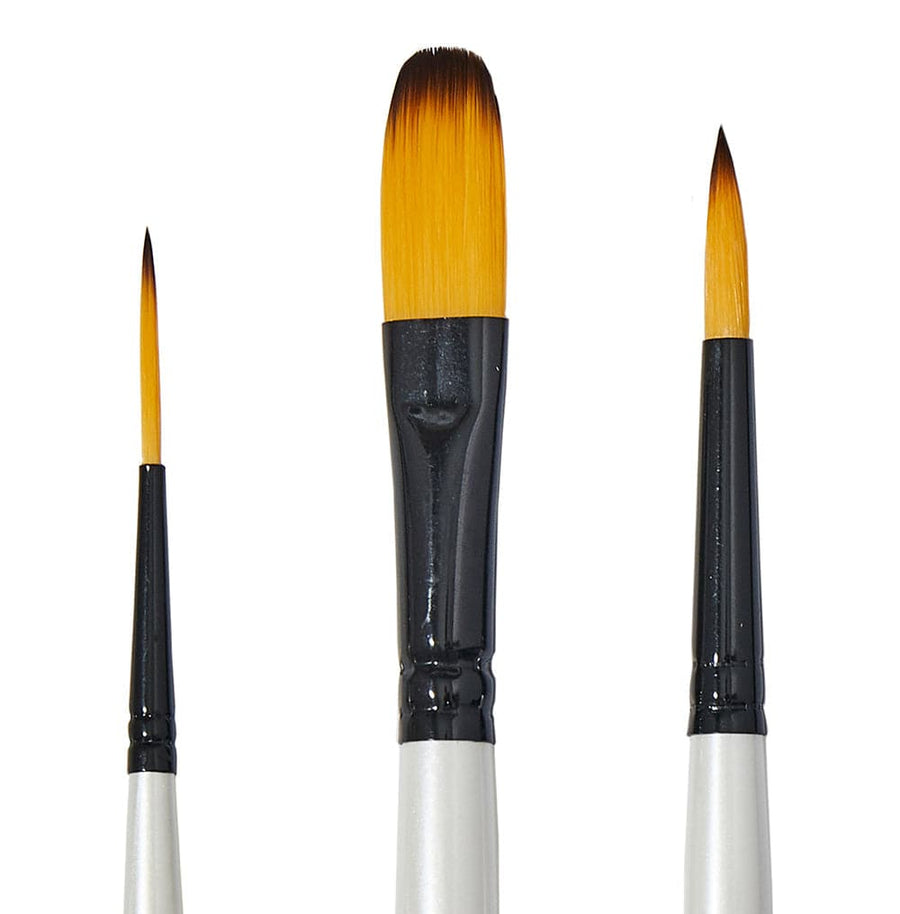 SET 3 SYNTHETIC BRUSHES LONG ROUND HANDLE
