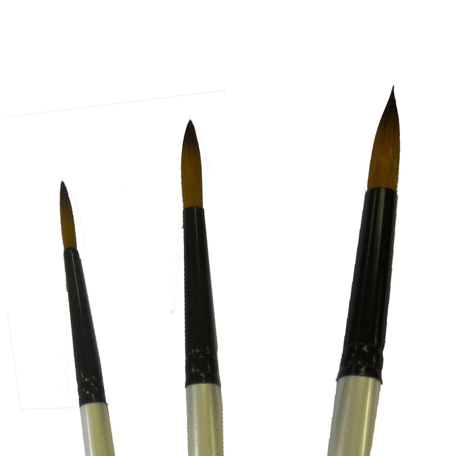 Set of 3 short-handled brushes round tip Ideal for amateur and school use.They ensure good grip of color and water.