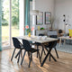 SKÅLSTA table and 4 chairs, dark grey-green marble effect hairpin black-grey/plastic black tubular metal/black-grey, 140x52 cm