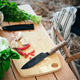 This knife handles everything from chopping onions to filleting fish – whether you're camping or in the kitchen at home. With a beautiful walnut handle, black-coated blade and a practical case for storage.