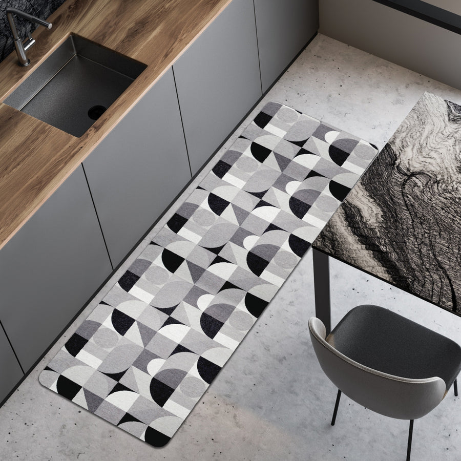 Songe geometric non-slip rug in grey/black cotton, 130 x 50 cm