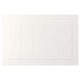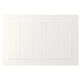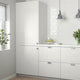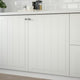 STENSUND fronts in white offers a touch of country living with framed fronts and grooved panels that create light, crafted look. The lacquered surface resists stain and moisture and is easy to wipe clean.