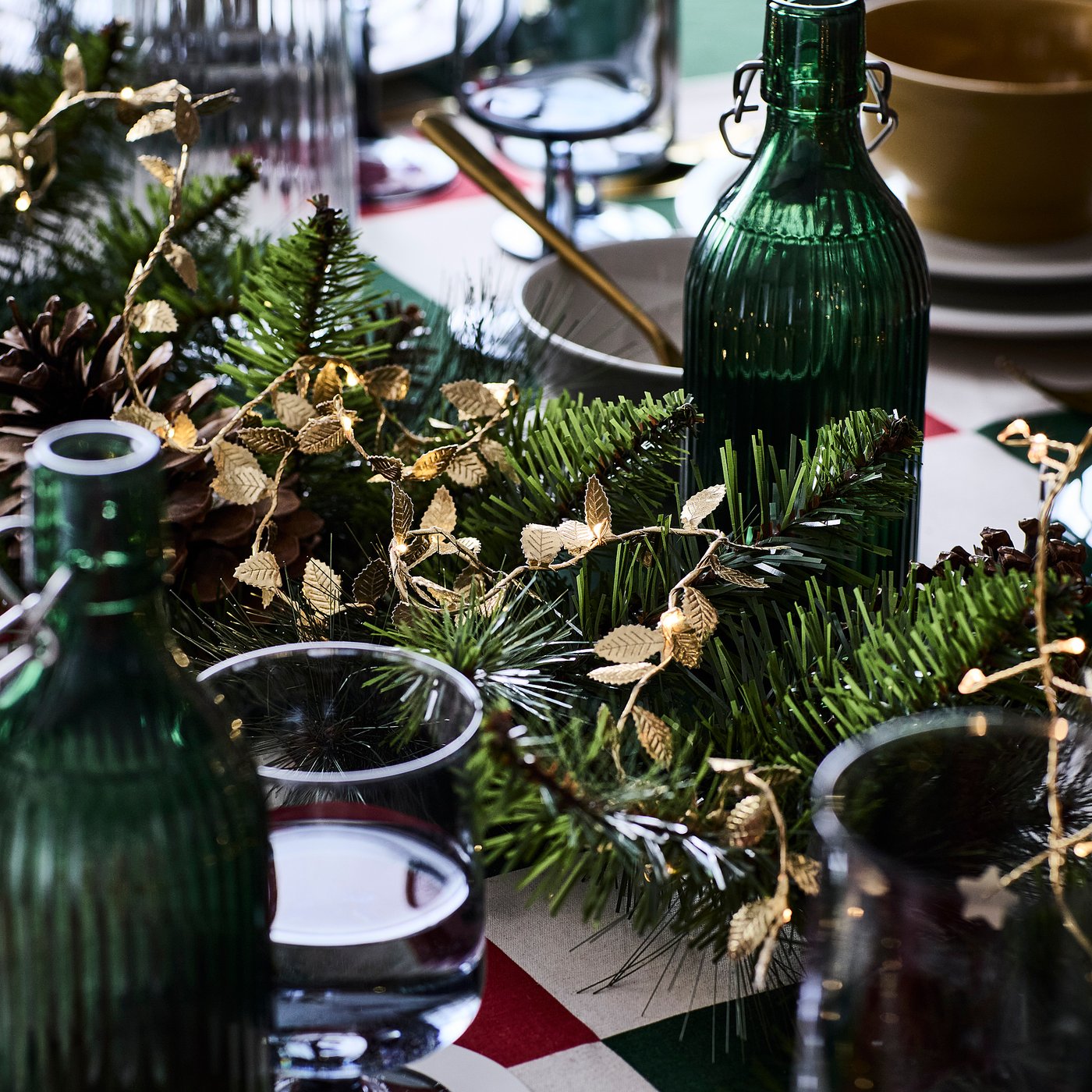 With its small diodes and gold-coloured leaves, this battery-operated LED light chain spreads a cosy light that makes your dining table and home shine.