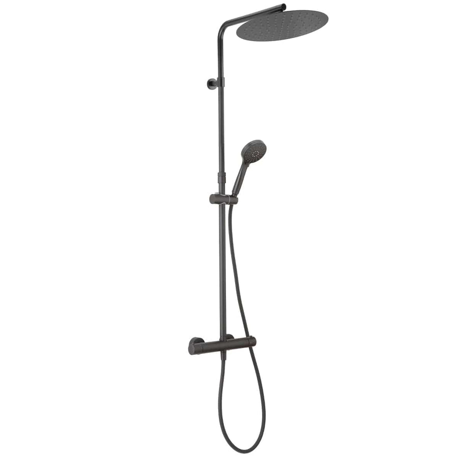 Tayrona thermostatic shower column blackIdeal for keeping the shower temperature under constant control and avoiding accidental risk of scalding due to too hot water thanks to the safety lock system and thanks to the "Safe-Touch" design of the mixer that does not overheat during use and thanks to the automatic stop of hot water flow in case of impovvisa lack of cold water. Ideal for replacing existing shower columns thanks to the possibility of mounting it on the holes already present from an old installation.Practical and easy installation thanks to the double height adjustment of the rod and wall fixagigo. - Comfort Thanks to the Extra-large Overhead Shower and Hand Shower practical and function - Thermostats have a safety lock and allows the preset water temperature to remain constant throughout the duration of the shower, anti-scalding, for safe bathing, - Reliability and Performance - Thanks to the Thermostat